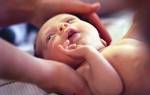 - Наклон головы младенца в одну сторону, при этом пальцы на одной из рук могут быть сжаты.